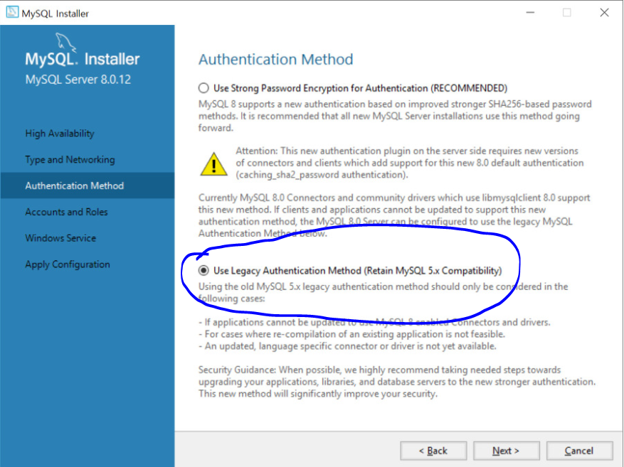 mysql 을 db로 사용하기 위해서 아래와 같이 Legacy 설정 먼저 변경 해준다.