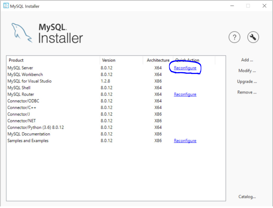 MySQL Installer 에서 설정을 변경할 수 있다.