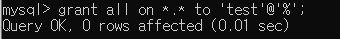이제 cmd 창을 열고 아래와 같이 mysql 의 유저를 생성하고 권한을 부여하면 된다.