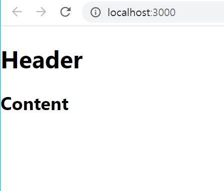 App.js 에서 사용할 수 있도록 아래와 같이 <Header>와 <Content> Component를 추가한다.